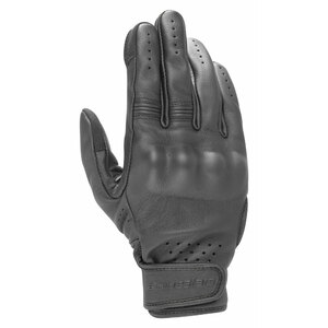 Guanti in pelle. Struttura principale in pelle di capra per elevati livelli di comfort, resistenza all'abrasione e traspirabilità. Materiali conduttivi sull'indice e sulla punta del pollice per il funzionamento touchscreen di smartphone e sistema GPS. Perforazioni posizionate strategicamente per un flusso d'aria e una ventilazione ottimali. Pannelli a soffietto in pelle sulle dita per una maggiore flessibilità e libertà di movimento. Chiusura superiore del polso integrata per facilità d'uso. Sistema di protezione con nocche rigide, con forma ultra egonomica per una resistenza superiore agli urti e all'abrasione. La struttura del palmo in pelle incorpora rinforzi imbottiti sulla zona di atterraggio del palmo per garantire una copertura aggiuntiva ed una durata e comfort eccellenti. Category II EN 13594:2015, Level 1KP
