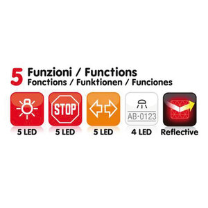 Omologato. Luce di posizione, stop, indicatore di direzione, luce targa, catarifrangente. Omologazione: E4 - 14196