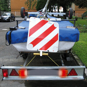 Fanale posteriore, 4 funzioni: posizione+stop+direzione+luce targa. Lampade 12V: 1xP21W + 1xP21/5W. Interasse di fissaggio 45/55mm, diametro fori 5mm. Completo di lampadine. Omologato