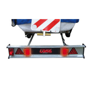 Kit di segnalazione posteriore omologazione europea. Cablato e montato pronto per l'utilizzo. Composto da: 2 fanali posteriori a 4 funzioni: posizione, stop, direzione, targa - 2,5 metri di cavo di collegamento - 7,5 metri di cablaggio - spinotto 7 poli. Lampadine incluse