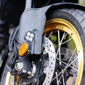 Luci supplementari accessorie. Impermeabile IPX7. Struttura in alluminio anodizzato CNC. Assorbimento 2,7W a 14,4V per pod. Tensione funzionamento 12-15V. Staffa integrata in acciaio inox. Include: 2 luci di marcia anteriori con staffa integrata, 2 connettori per collegamento facile dei cavi. E-marked
