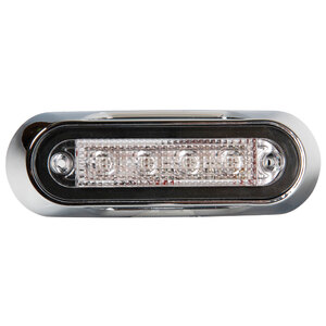 Luce a 4 led, montaggio superficie, 12/24V. Con cornice cromata. Omologazione E11 R1