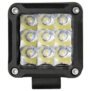 Faro ausiliario a 9 Led. Struttura in alluminio, lente in PMMA, impermeabile IP67. Staffa in acciaio completa di viti per il fissaggio. Luce focalizzata multivoltaggio da 10W. 6000°K. 1000 lumen. Particolarmente indicato per moto, fuoristrada, camion, trattori, muletti, escavatori, ecc. Volt: 9/32V Watt: 10W. Prodotto non omologato per uso stradale