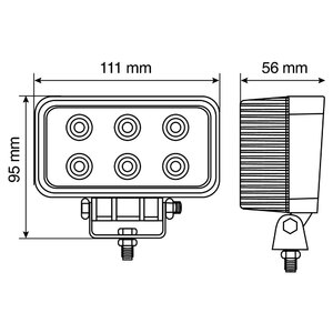 Faro ausiliario a 6 Led - 10/30V - Bianco. Struttura in alluminio, lente in PMMA, impermeabile IP67. Staffa in acciaio completa di viti per il fissaggio. Luce focalizzata multivoltaggio da 18W (6 led x 3W), 6000°K - 1200 lumen. Particolarmente indicato per fuoristrada, camion, trattori, muletti, escavatori, ecc. Prodotto non omologato. Non idoneo per l'illuminazione del manto stradale durante la guida