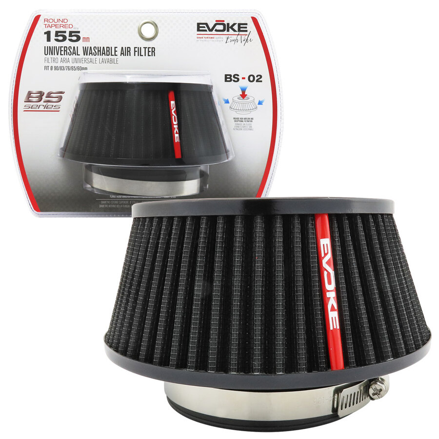 Filtro aria universale lavabile. Fit diam. 90/83/76/65/60mm. Fornisce un flusso d'aria elevato e una filtrazione eccezionale. Diametro esterno superiore: 121mm. Diametro esterno della base: 155mm Diametro interno della flangia: 90mm Lunghezza della flangia: 28mm Altezza: 67mm. Design a morsetto facile da installare. Progettato per aumentare la potenza e l'accelerazione. Progettato con materiale lavabile e riutilizzabile. Pre-oliato e pronto per l'uso. Include anelli adattatori. Filtro speciale ad alte prestazioni garantisce un maggior flusso di aria in entrata ed un'ottima efficienza di filtraggio con grandi benefici per il rendimento e le performance del motore. La struttura a sandwich a doppia maglia garantisce una lunga durata al filtro e un'eccellente blocco delle impuritá. La confezione include: 1 filtro per l'aria (in tessuto non tessuto), 1 morsetto in acciaio inossidabile, 4 adattatori in gomma (da 83/76/65/60 mm)