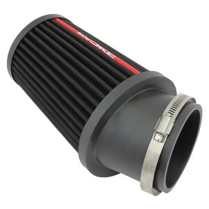 Filtro aria universale lavabile. Fit diam. 76mm. Fornisce un flusso d'aria elevato e una filtrazione eccezionale. Diametro esterno superiore: 89mm. Diametro esterno della base: 117mm Diametro interno della flangia: 76mm Angolo della flangia: 20° Lunghezza della flangia: 68mm Altezza: 150mm. Design a morsetto facile da installare. Progettato per aumentare la potenza e l'accelerazione. Progettato con materiale lavabile e riutilizzabile. Pre-oliato e pronto per l'uso. Include anelli adattatori. Filtro speciale ad alte prestazioni garantisce un maggior flusso di aria in entrata ed un'ottima efficienza di filtraggio con grandi benefici per il rendimento e le performance del motore. La struttura a sandwich a doppia maglia garantisce una lunga durata al filtro e un'eccellente blocco delle impuritá. La confezione include: 1 filtro per l'aria (in tessuto non tessuto), 1 morsetto in acciaio inossidabile