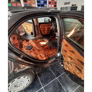 Tappetino antivibrante in mastice economico per zone con carichi di vibrazioni leggeri o medi. Il materiale antivibrante universale con spessore di 2mm ha una buona adesione al metallo, il mastice è costituito da una miscela di polimeri speciali, rinforzati con un foglio di alluminio. L'uso di un elastomero modificato nella composizione del mastice conferisce al materiale un buon fattore di perdita meccanica, buona adesione, resistenza all'ambiente e un ampio intervallo di temperature di lavoro. Non teme l'acqua, ha caratteristiche di tenuta e anticorrosione e non necessita di riscaldamento durante l'installazione. Spessore: 2mm. Spessore lamina: 60 micron. Fattore di perdita meccanica: 0,26. Peso del foglio: 1,10 kg. Peso: 3,14 kg/m2. Adesione: 6 N/cm. Da utilizzare come primo strato