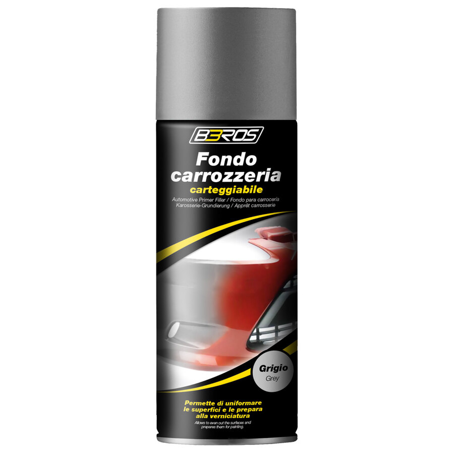Fondo carrozzeria carteggiabile. Permette di uniformare le superfici e le prepara alla verniciatura. Fondo monocomponente aggrappante con elevate proprietà riempitive. Carteggiabile e sovra-verniciabile con smalti monocomponenti e bicomponenti nitro, acrilici e poliuretanici. Asciutto al tatto: 15-20 minuti