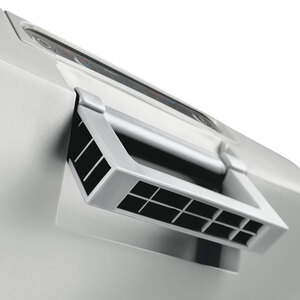 Frigorifero portatile termoelettrico (sistema Peltier), dotato di pannello di comando soft-touch con indicazione di controllo LED. Raffreddamento fino a 27° C sotto la temperatura ambiente, la temperatura minima che riesce a raggiungere è +5°C . Fino a 65° in riscaldamento. Alimentazione 12/24V e anche 230 volt (cavo incluso). La protezione attiva della batteria impedisce la scarica completa della batteria del veicolo. Ventola resistente all'usura per una ventilazione dinamica. Volume interno di circa 33 litri e possibilità collocazione in verticale bottiglie da 2 litri. Energy efficiency class (Regulation (EU) 2019/2016) F