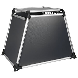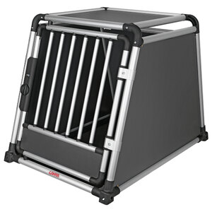 Trasportino in lega di alluminio, specifico per il trasporto di animali in auto. Massima sicurezza, struttura tubolare con angoli e raccordi in plastica arrotondata, senza angoli vivi e senza componenti e profili affilati. Comoda e leggera da mettere nel baule o da trasportare. Non causa danni da contatto con gli interni dell'auto, con i passeggeri e con l'animale. Stabile, sicuro, silenzioso e senza vibrazioni durante la guida. Appositamente progettato con pannelli obliqui per adattarsi alle forme dell'abitacolo e dal portellone posteriore del veicolo. Tappetino interno in tessuto + neoprene asportabile e lavabile
