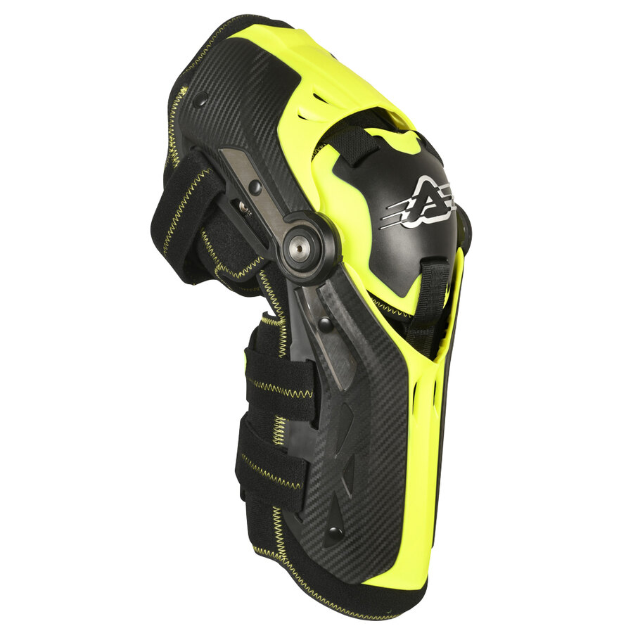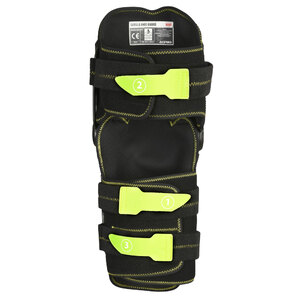 Ginocchiera alta gamma. Protezione rotula, tibia e parte inferiore del femore realizzata in materiale elastomerico che permette di adattarsi all'anatomia della gamba e di assorbire gli urti. Estrema libertà di movimento e ottima rigidezza torsionale e fl essionale del ginocchio garantiti dal sistema a doppia articolazione realizzato combinando materiali tecnopolimerici e inserti in acciaio inox. Conchiglia rotulare mobile assicura ampia mobilità. Interno removibile e lavabile costruito in morbido neoprene. Fissaggio assicurato da 3 fasce regolabili. Protezione ginocchio, piatto tibiale e femore OMOLOGATA EN 1621-1/12 Livello 2