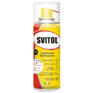 Lubrifica, elimina gli attriti, sblocca, elimina l'umidità, previene la ruggine e protegge tutte le superfici metalliche. Grazie alla sua esclusiva multifunzionalità, Svitol Lubrificante è il prodotto ideale per mille occasioni d?uso, dall'industria all'autoriparazione, dalla casa al giardino, dallo sport alla nautica, dal lavoro al fai da te. La valvola a 360° consente l'erogazione del prodotto in tutte le posizioni anche con valvola capovolta. L'intero prodotto è realizzato in Italia e per ognuna delle sue funzioni garantisce performance eccellenti e qualità professionale