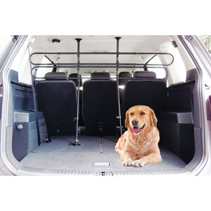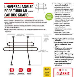 Griglia separatrice per cani universale da auto in tubolare con aste inclinate, in due sezioni. Soluzione perfetta per offrire un'esperienza di viaggio piacevole al guidatore, ai passeggeri e al vostro animale domestico. Design delle gambe ad angolo per adattarsi ai sedili reclinati o sedili posteriori. Completamente regolabile in altezza e larghezza per adattarsi alla maggior parte dei SUV/Auto a due volumi/Van/Statio Wagon. Permette una visione chiara fuori dal lunotto posteriore. Montaggio ed installazione rapidi con tubi che si montano a pressione. Senza la necessità di praticare fori, buchi o utilizzare strumenti. Tamponi di protezione in gomma per proteggere il rivestimento, tappetini e prevenire gli scivolamenti. Realizzata con tubi in acciaio verniciato a polvere resistenti ma leggeri. Facile da riporre in quanto di piccole dimensioni e pieghevole quando non in uso