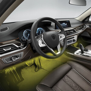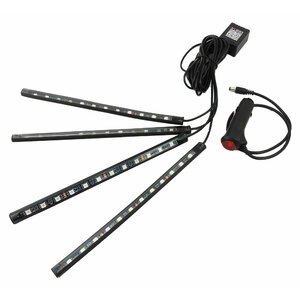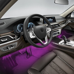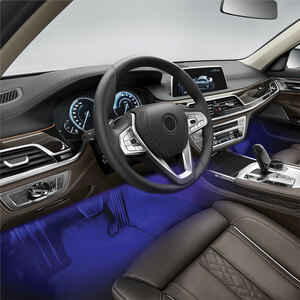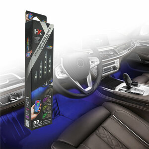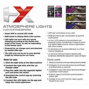 Luci d'atmosfera con controllo via App (iOS e Android). 18 Led strip. 4x 32cm. Illuminazione RGB dinamica: crea un'atmosfera multicolore e personalizzata all'interno dell'auto. Sincronizzazione audio reattiva: le luci LED cambiano colore e intensità seguendo il ritmo della musica, dei suoni ambientali e della voce umana. Facile installazione: alimentazione tramite presa dell'auto e fissaggio rapido con biadesivo. Taglio su misura: la striscia LED può essere regolata alla lunghezza desiderata grazie ai segni di taglio predefiniti. 12V