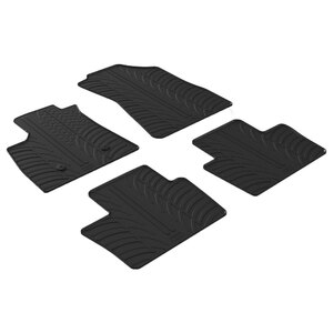 Tappeti in gomma di alta qualità e lunga durata conforme alla normativa Europea. Con bottoni di fissaggio specifici (se il veicolo li prevede in origine). Bordatura a rilievo maggiorato, retro antiscivolo. La foto è solo indicativa