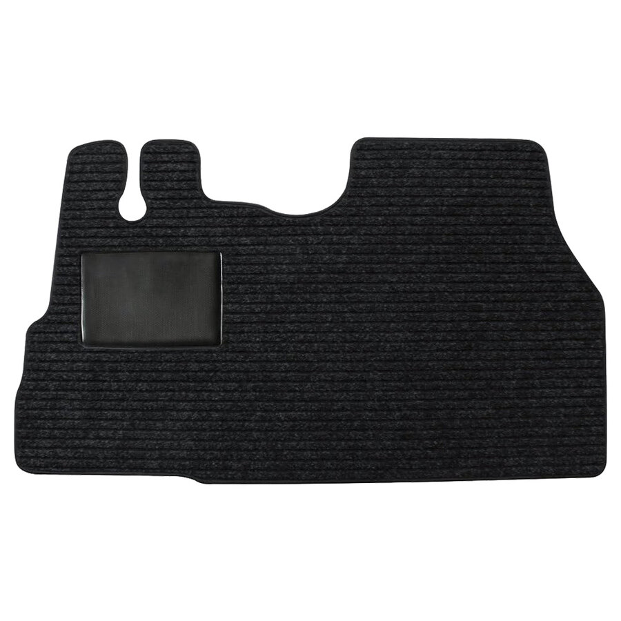 Tappeto realizzato in resistente moquette particolarmente adatta all'impiego sui veicoli commerciali. Colore grigio a righe nere