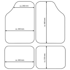 Set completo 2 anteriore + 2 posteriore con sottofondo in gomma puntinata antiscivolo. Battitacco sul lato guida. Facile manutenzione e resistenti. Taglia unica, universale