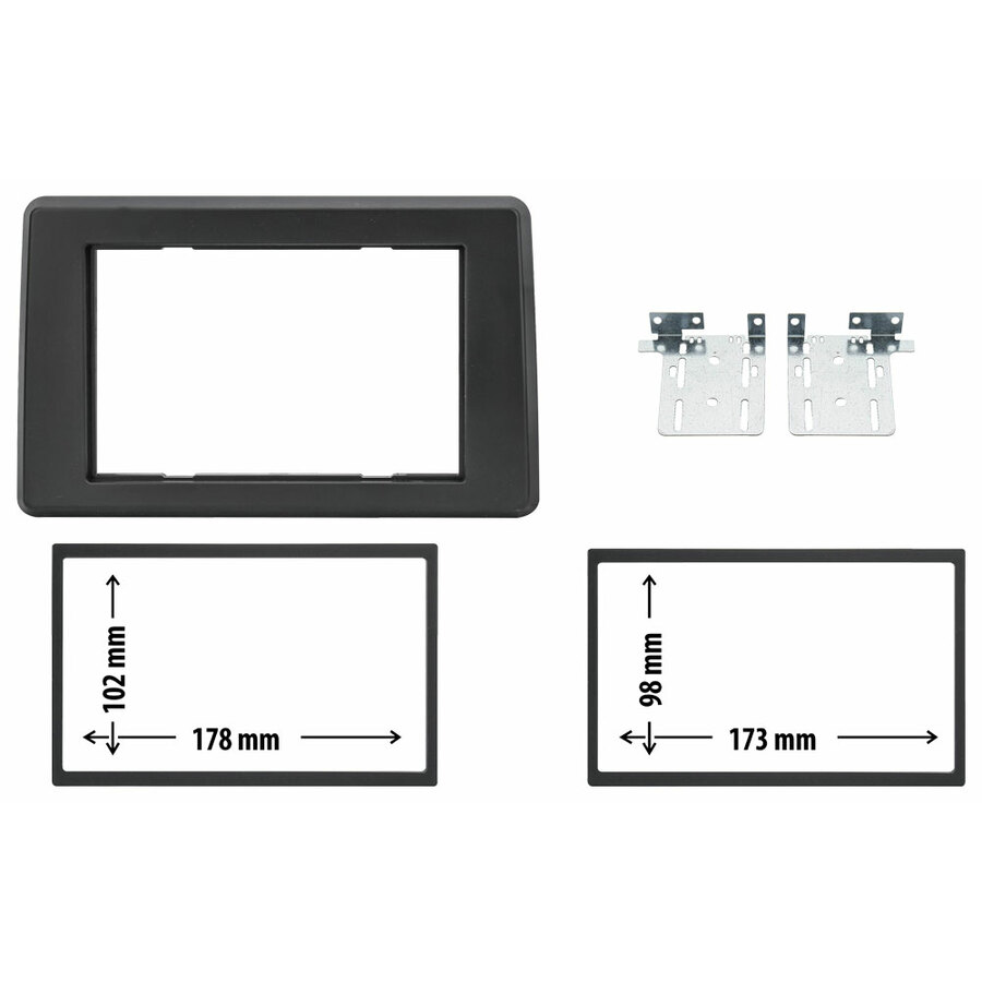 Adattatore per vano autoradio. Kit composto da: adattatore per vano autoradio, cornice di rifinitura 178x102 mm, cornice di rifinitura 173x98 mm e staffe di fissaggio