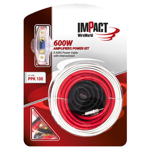 Kit installazione amplificatori 600 watt RMS. 8AWG power cable. Il kit contiene: portafusibili AFC, 5mt di cavo interconnessione audio, 5 mt cavo corrente con sezione 8mmq, 1 mt di cavo corrente trasparente sezione 8mmq, 2 terminali ad anello, 2 terminali a forchetta, 4 terminali anello precablati
