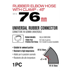 Connettore in gomma universale. Adatto per le posizioni scomode. Resistente alle alte temperature. La confezione include: 1 tubo di gomma, 2 morsetti in acciaio inossidabile