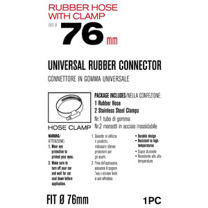 Connettore in gomma universale. Super durevole. Resistente alle alte temperature. La confezione include: 1 tubo di gomma, 2 morsetti in acciaio inossidabile