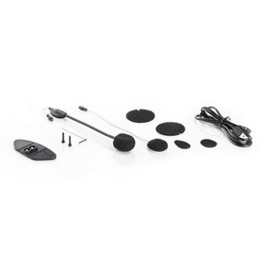 Kit interfono per 1 casco. Conference fino a 4 persone. Comunicazione tra pilota-passeggero e tra moto-moto fino a 800m. Connessione con 2 cellulari contemporaneamente. Batteria 23h. Il tutto in modalità Full Duplex, con qualità digitale e sistema DNK per la soppressione del rumore e AGC per il controllo automatico del volume. Compatibile con i sistemi di connettività delle maggiori case motociclistiche (BMW, KTM, Ducati, ecc). Impermeabili certificati (IPX6). Radio FM tramite App. La confezione include: 1 dispositivo, 1 microfono a braccetto e a filo, 1sistema aggancio slide-in biadesivo per tutti i tipi di casco, 1 audio kit con speaker HI-FI.