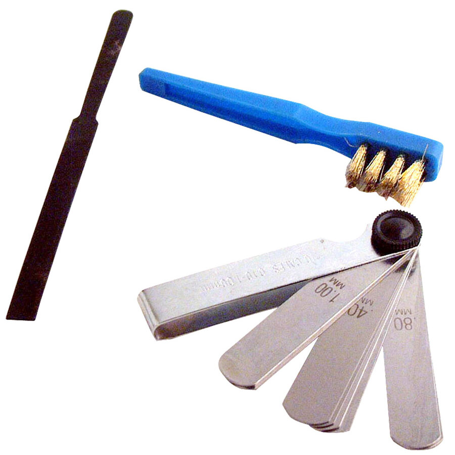 Kit per la pulizia e la regolazione delle candele d'accensione. Il kit include: spazzola di pulizia, lima spessimetro 10 pezzi da 0,1mm a 0,9mm. Per regolare i divari per passo da 5/100mm