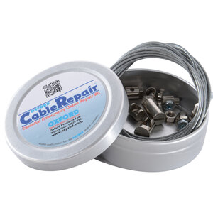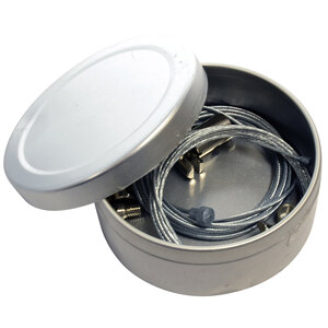 Utilizzato per la riparazione temporanea dei cavi rotti. Comprende 2 bobine di cavo e vari nipples per la saldatura. Fornito con un pratico barattolo in alluminio. Nipples da saldare: 5mm Ø x 8 millimetri, 7 millimetri ø x 11 millimetri, Ø 8mm x 12mm, Ø 8mm x 13 millimetri, Ø 8mm x 14 millimetri con il manicotto e dado, 10mm ø x 20 millimetri. Nipples: 7,8 millimetri ø x 9 millimetri per cavo ø 1,5 millimetri, 7,8 millimetri x 15mm per cavo ø 1,5 millimetri, in ottone 3,5 millimetri per cavo da 1,1 millimetri. Cavi 1.6m x 1,5 millimetri ø con nipples 3.5mm-6mm su un'estremità. Cavo 1,6m x 1,1 millimetri ø con nipples 3 millimetri su un'estremità