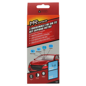 Visto in TV. Mr. Repair Windshield Repair minimizza i danni da fessurazioni e scheggiature del vetro, bloccandone l'espandersi. Il prodotto è facile da usare. Funziona riempiendo la zona danneggiata con una resina indurente a lunga durata; la superficie risulta più resistente di prima e la riparazione è quasi invisibile. Si ottengono migliori risultati intervenendo appena ci si accorge del danno occorso, prima che ci siano infilltrazioni di sporco o acqua. Non si possono riparare danni oltre il primo livello del vetro.