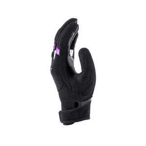 Guanto in tessuto da donna. Estivo, con rinforzo nocche interne ed inserti in materiale traforato. Dita in materiale traforato ad alta tenacità con inserti in pelle a contrasto e dettagli 3D antiurto. Mignolo in materiale stretch rinforzato con pelle sintetica e dettaglio riflettente. Aree infradito in materiale stretch e tessuto elastico a contrasto. Dorso in materiale stretch e logo AXO. Pollice in materiale traforato rinforzato in pelle sintetica e dettagli 3D antiurto. Polso in materiale stretch e dettagli in pelle sintetica. Laccio polso in materiale stretch. Palmo in pelle e rinforzi in materiale antiscivolo. Inserto stretch su area connessione pollice. Area polso in materiale stretch e dettagli in pelle. Dettagli in materiale "touchscreen compatibile" su indice e pollice. Chiusura laccio polso con velcro. Interno guanto foderato in microfibra. Margine polso rifinito in materiale stretch. Protezione nocche ergonomica interna. Prodotto Certificato EN13594:2015-Livello: 1KP