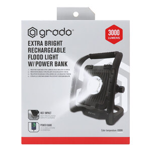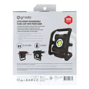 Proiettore ricaricabile extra luminoso, con accumulatore di energia. Luce eccezionalmente luminosa per una maggiore visibilità in condizioni di scarsa luminosità. Accumulatore di energia integrato: utile per ricaricare i dispositivi in viaggio. Fornisce opzioni di illuminazione versatili per situazioni diverse. Ricarica con USB Type C (cavo incluso). 3000 lumens. Led COB 6500K. Ruotabile a 360°. IK07 protezione da impatti. IP54. CRI (resa cromatica): 80. Materiale di costruzione: alluminio, ABS e TPE. Batteria 3,7V 8000mAh. Tempo di ricarica: 4,5 ore. Tempo di lavoro 2 - 5 ore. 30W
