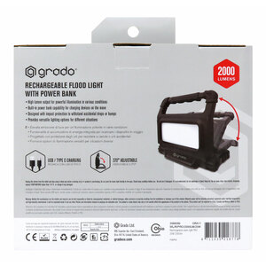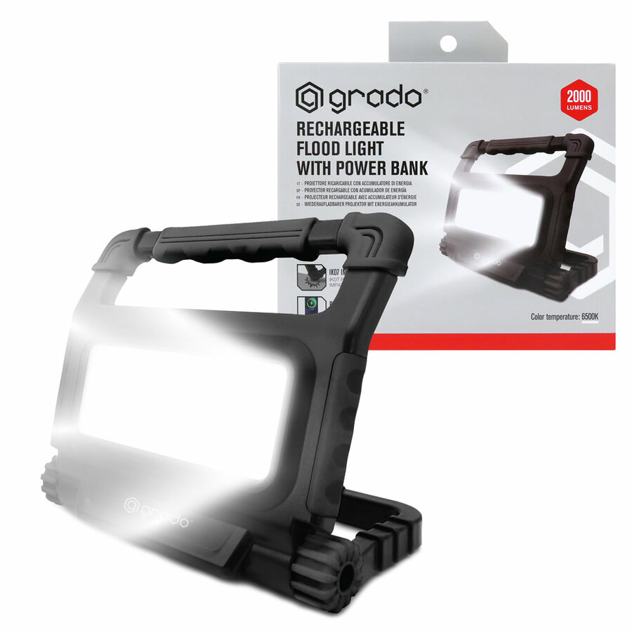 Proiettore ricaricabile, con accumulatore di energia. Elevata emissione di luce per un'illuminazione potente in varie condizioni. Accumulatore di energia integrato: utile per ricaricare i dispositivi in viaggio. Ricarica con USB Type C (cavo incluso). 2000 lumens. 6500K. Ruotabile a 270°. IK07 protezione da impatti. IP54. CRI (resa cromatica): 80. Materiale di costruzione: ABS e TPE. Batteria 3,7V 5000mAh. Tempo di ricarica: 3 ore. Tempo di lavoro 1,5 - 4 ore. 20W