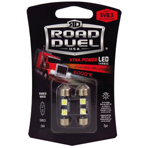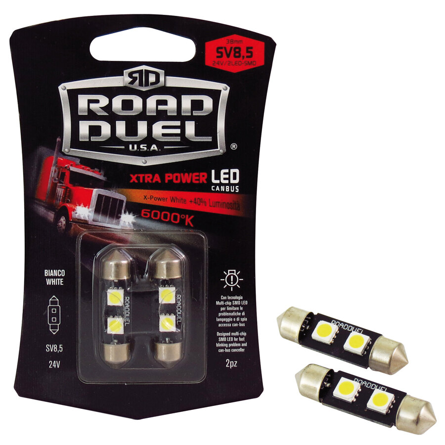 Road Duel Xtra Power Led è progettato con la tecnologia Multi-chip SMD Led per limitare le problematiche di lampeggio o di spia accesa provocato dal sistema di OBC. Aggiorna il tuo camion con tutti i vantaggi della tecnologia ad illuminazione a Led. Road Duel Xtra Power Led ti offre più luminosità, un confortevole colore chiaro, durata e risparmio di energia, resistenza al calore ed alle vibrazioni. La lampadina è progettata seguendo il regolamento ECE che rende quindi questi Led compatibili con la maggior parte dei modelli di camion nel mercato. Nel caso non si accendesse alcuna luce dopo l'installazione, prrego installare la lampadina in senso opposto. Luce bianca, design progettato per camion, resistente al calore e alle vibrazioni, elevata luminosità, risparmio energetico, durata. Attenzione: lampadine 24V adatte per camion e furgoni (non per auto in quanto sono 12V)