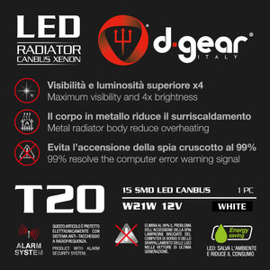 Lampadina 15 SMD LED Radiator Canbus Xenon. Massima visibilità e luminosità: 4 volte superiore rispetto ad una lampadina standard. Il corpo in metallo riduce il surriscadamento. Evita l'accensione della spia cruscotto al 99%. In alcuni veicoli che hanno il computer di bordo (OBC) potrebbe essere necessario aggiungere una coppia di resistenze di carico al fine di evitare il messaggio di errore visualizzato sul cruscotto. Se la luce non funziona dopo l'installazione, è sufficiente invertire il terminale