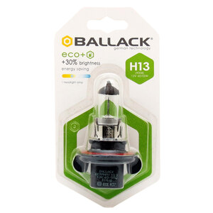 Lampadina a risparmio energetico a lunga durata. Minor consumo di carburante, minori emissioni di CO2, risparmio energetico, 30% di luce in più. La riduzione del consumo di energia dato da queste lampadine si traduce in un'ottimizzazione del consumo di carburante dell'auto. L'utilizzo di Ballack Eco consente un risparmio fino al 20% di energia per ogni set di lampade. Allo stesso tempo si fornisce il proprio contributo alla salvaguardia del pianeta attraverso la riduzione delle emissioni dannose CO2 nell'atmosfera. Omologazione E13 - ECE R37