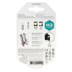 Lampadina di dimensioni simili alle lampadine alogene originali. Il chip LED di alta qualità offre una maggiore efficienza luminosa. +200% di luminosità. Progettata senza ventola. Canbus integrato. Nessuna modifica o cablaggio aggiuntivo necessario. In alcuni veicoli che hanno il computer di bordo (OBC) potrebbe essere necessario aggiungere una coppia di resistenze di carico al fine di evitare il messaggio di errore visualizzato sul cruscotto. Se la luce non funziona dopo l'installazione, è sufficiente invertire il terminale. Sistema di controllo della temperatura intelligente integrato. Piastra in rame a conduzione termica per una migliore dissipazione del calore. Corpo unico in alluminio