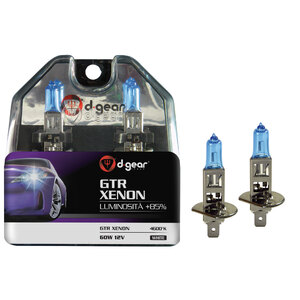 GTR è la linea di D-Gear di alta gamma. Le lampadine GTR Xenon producono un fascio 85% più luminoso rispetto alle tradizionali alogene. Grazie alla nuova ed innovativa tecnologia Xenon Starlights, le lampadine GTR per luminosità ed intensità sono quelle che più si avvicinano ai Kit HID Xenon. La particolare frequenza bianca della luce garantisce una guida più sicura, una riduzione dell'affaticamento ottico, un aumento della percezione della segnaletica stradale ed un'interpretazione più naturale degli ostacoli, disponibili anche con una leggera frequenza azzurra. Le lampadine sono fornite in coppia e sono omologate E13 - ECE R37