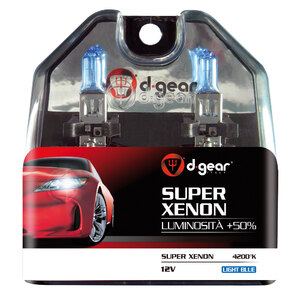 Il modello Super è il primo livello di lampadine D-gear con la nuova tecnologia Xenon. Emette luce bianca che raddoppia il grado di lucentezza rispetto alle tradizionali lampadine alogene, eliminando dai vostri fanali quel fastidioso color bianco-giallo originale, disponibili anche con una leggera frequenza azzurra. Le lampadine sono fornite in coppia e sono omologate E13 - ECE R37