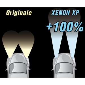XP, con il suo fascio 100% più luminoso rispetto a una normale alogena è la lampadina TOP di gamma. Lo speciale vetro con trattamento "Mirror Chrome" e la base lucida contraddistinguono la lampadina. Il fascio di luce è più luminoso e brillante consente una guida meno affaticante e una visione della strada, dei cartelli e degli ostacoli migliore. La luminosità e l'intensità è simile alla luce diurna e permette una visione chiara e dettagliata di tutto ciò che sta attorno