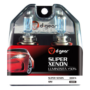 Il modello Super è il primo livello di lampadine D-gear con la nuova tecnologia Xenon. Emette luce bianca che raddoppia il grado di lucentezza rispetto alle tradizionali lampadine alogene, eliminando dai vostri fanali quel fastidioso color bianco-giallo originale, disponibili anche con una leggera frequenza azzurra. Le lampadine sono fornite in coppia e sono omologate E13 - ECE R37