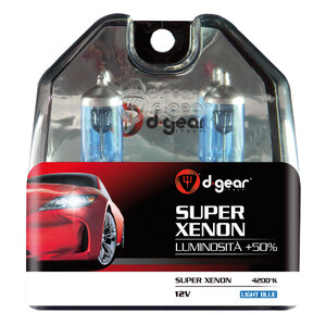 Il modello Super è il primo livello di lampadine D-gear con la nuova tecnologia Xenon. Emette luce bianca che raddoppia il grado di lucentezza rispetto alle tradizionali lampadine alogene, eliminando dai vostri fanali quel fastidioso color bianco-giallo originale, disponibili anche con una leggera frequenza azzurra. Le lampadine sono fornite in coppia e sono omologate E13 - ECE R37