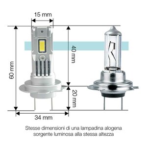 Lampade a LED installabili senza modifiche e senza centralina esterna. Tecnologia a LED di ultima generazione. La trasformazione da alogena a LED è semplice e veloce. Come per le alogene originali, non sono necessari adattatori o modifiche che invalidano la garanzia del veicolo. Maggiore luce, più sicurezza, aumenta la visibilità della strada, della segnaletica stradale e soprattutto degli ostacoli. Maggiore durata, minor consumo ed evita fastidi legati alla frequenti sostituzioni delle lampade. Maggiore efficienza luminosa, minor consumo di energia. Aumenta la durata della batteria e di altri componenti. Kit composto da 2 lampadine Iluz con led CSP di ultima generazione