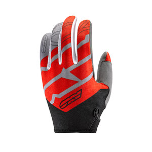Guanto Off Road in tessuto stampato, inserti in materiale elastico e palmo in pelle sintetica. Dorso in materiale stampato "Geometric Block" ad alta resistenza. Aree infradito in tessuto elastico. Pollice in materiale stampato con rinforzo in pelle sintetica. Polso in materiale stampato. Palmo in pelle sintetica. Dettagli "AXO Grip" su dito indice e medio. Area polso in pelle sintetica ed extra protezione 3D antiurto. Chiusura laccio polso con velcro ad alta resistenza. Margine polso rifinito in materiale stretch
