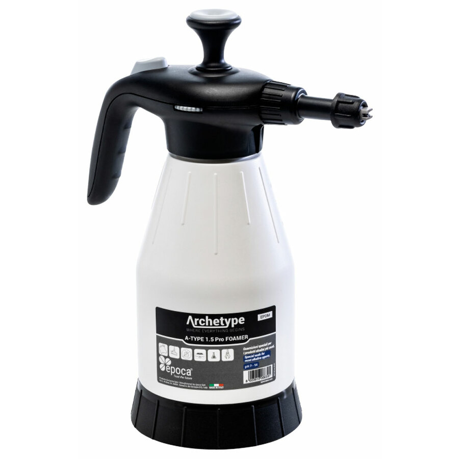 Pompa schiumogena. Parti strutturali della testa in resistente polipropilene (PP). Valvola di depressurizzazione manuale ed automatica a 3 bar munita di lancia ed ugello formaschiuma. Contenitore robusto in materiale tecnico. Ugello a ventaglio, angolo da 110°. View stripe con scala graduata. Fondello di stabilità. Tacche di presa. Capacità totale 1860ml. Capacità operativa 1000ml. Guarnizione EPDM. Valvola di sicurezza