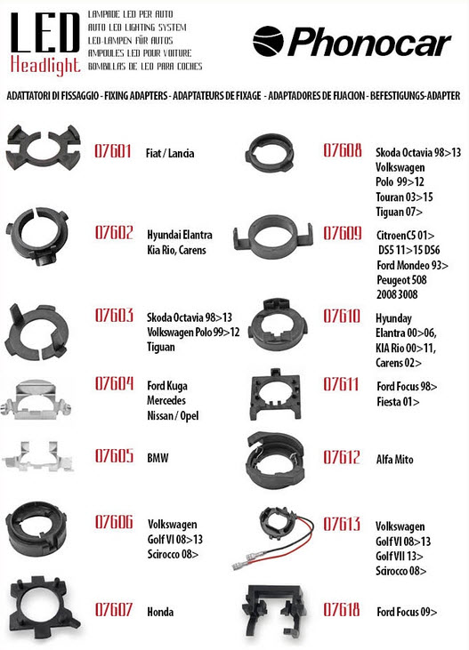 Led Headlight - Adattatore portalampada - PHONOCAR Volkswagen Golf VI, Golf VII, Scirocco PHONOCAR