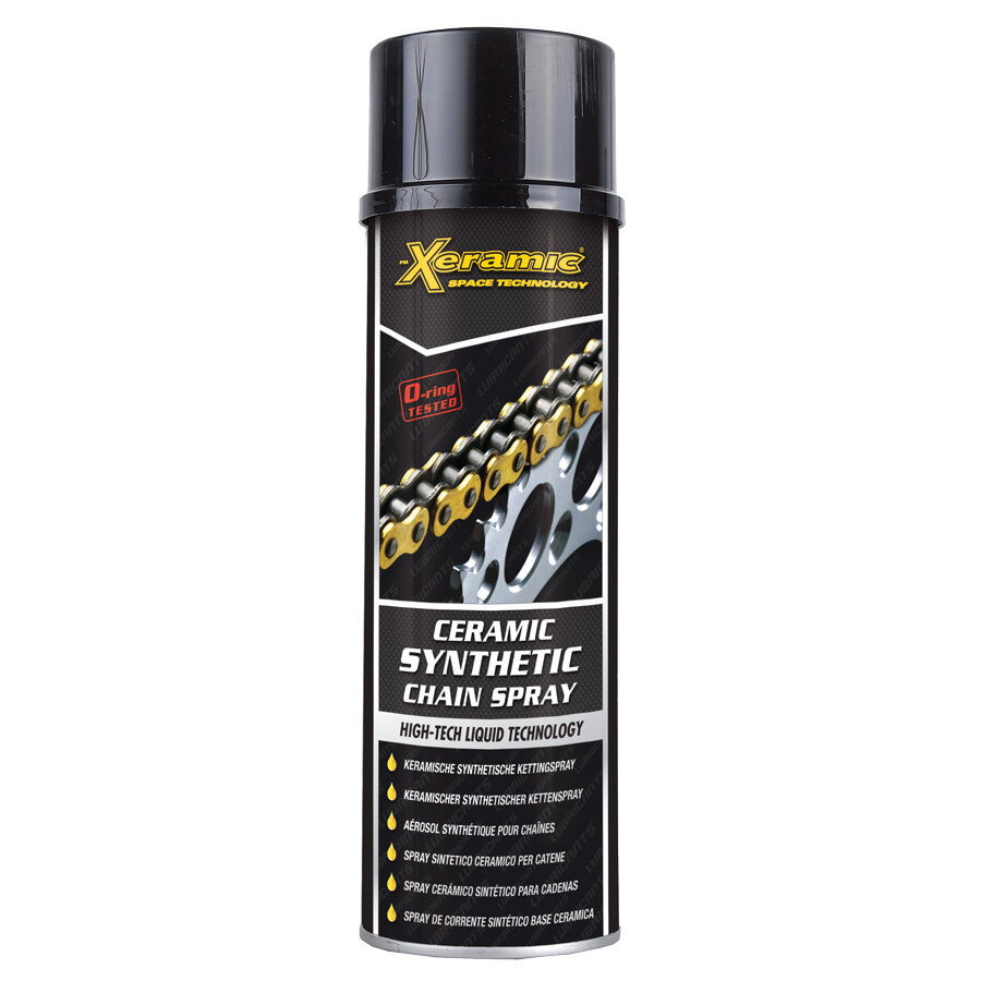 PM Xeramic Synthetic Chain Spry è un modernissimo spry per catene con proprietà Long-Life a base di materiale ceramico. Questo materiale eccezionale, originariamente perfezionato per la ricerca spaziale, ha trovato adesso nella PM Xeramic Synthetic Chain Spray un rivoluzionario campo di applicazione. PM Xeramic Synthetic Chain Spray è a base di materie sintetiche, arricchite con materiale ceramico e dopes di primissima qualità che ne ottimalizzano le proprietà lubrificanti. PM Xeramic Chain Spray non si secca, mantiene la catena duttile e resiste alle temperature elevate
