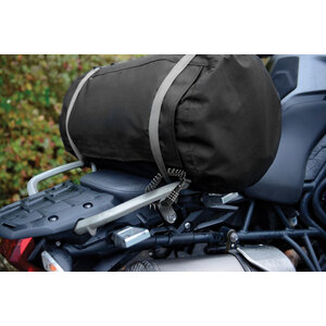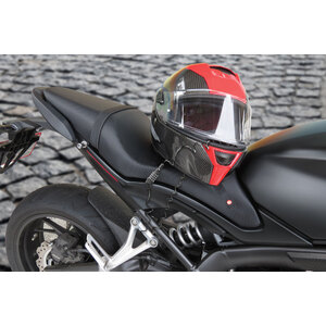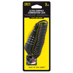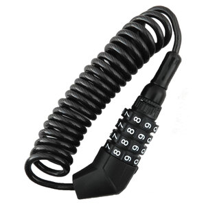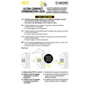 Lucchetto con combinazione, ultra compatto. Lunghezza max 150cm. Il design flessibile del cavo consente di regolare la lunghezza per fissare facilmente il casco ed altri oggetti. Compatto, leggero, facile da trasportare