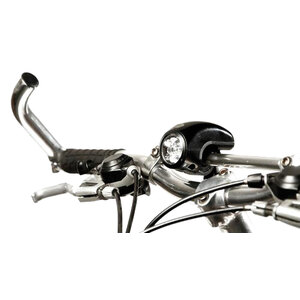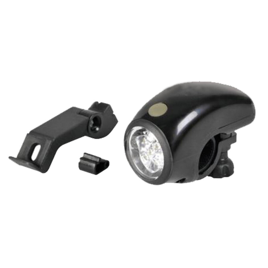Fanale anteriore a 5 led con doppio attacco. Led ad alta luminosità 3 funzioni: luce fissa, lampeggiante e lampeggiante progressivo. Universale, di facile installazione tramite vite oppure attacco a forcella con staffa inclusa. Funziona con 3 pile AAA (non fornite)