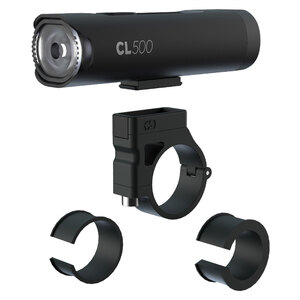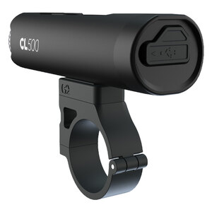Luce anteriore ricaricabile tramite USB, potenza massima 500 lumen. Indicatore di autonomia LCD. Staffa per manubrio progettata per un fissaggio semplice e sicuro alla bicicletta. Durata 1-80 ore (dipende della modalità luce selezionata). Uscita power bank USB. Visibilità a 270 gradi. Batteria al litio ricaricabili tramite USB da 3,7 V/2400 mAh. Impermeabile IPX4. Corpo in lega estrusa. Staffa per manubrio CLIQR Mini 31,8 mm. Cavo di ricarica USB in dotazione