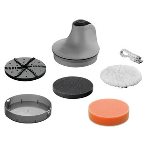 Spazzola rotante elettrica, senza fili. Ricaricabile. Multifunzione, per effettuare numerosi lavori di manutenzione, per la cura, pulizia, lucidatura dell'auto. Utilizzabile anche per lavori fai da te e domestici. Ergonomica, leggera, di piccole dimensioni per essere riposta facilmente nel bagagliaio. Utilizzabile senza fili per maggiore praticità e per essere usata in qualunque posizione e luogo. Può essere utilizzata come raschia ghiaccio oppure, applicando gli appositi tamponi, come strumento per lucidare la carrozzeria, per la pulizia dei fanali, dei cerchi, ecc. Utilizzabile con tutti i tamponi di diametro 10cm/4" con sistema di fissaggio tipo velcro. Capacità della batteria: 2000mAh. Tempo di carica: 3/4h. Numero massimo di giri:160rpm. Cavo di ricarica: USB Type-C 5V